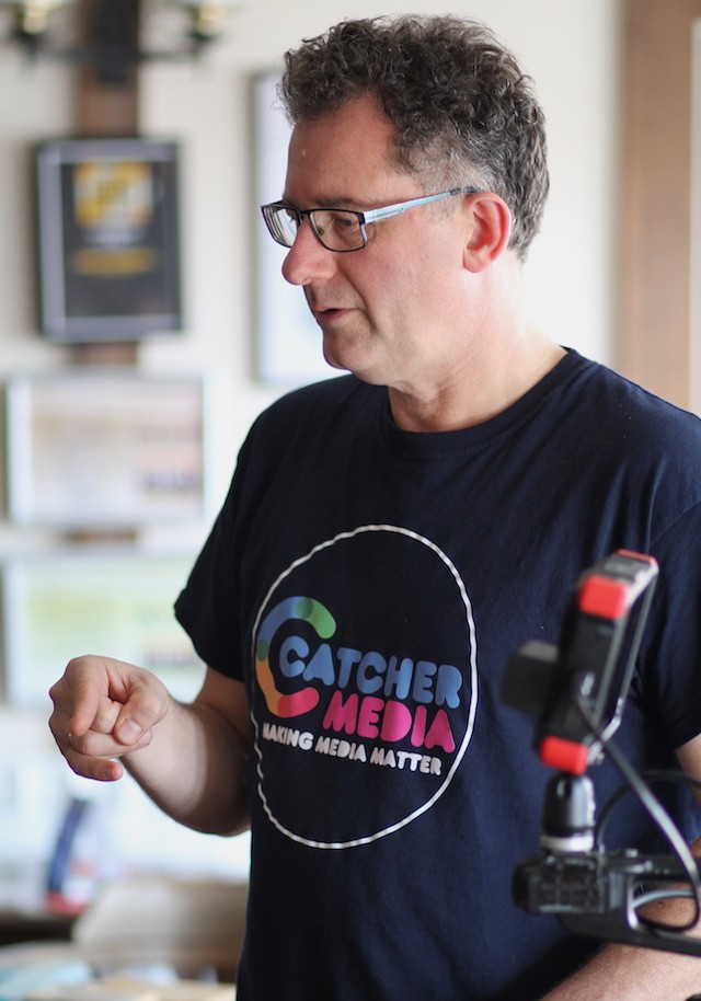 Since 1997, he has been running Catcher Media. He is responsible for delivering workshops, scripting, directing and many of the technical aspects of film-making. Rick says that it’s really about relationships: with creatives, experts and people in the community with a story to tell. When a recent interviewee on Catcher’s HLTAL heritage project said that in a hundred years people would be looking back at this work: he could only think ‘Wow!’